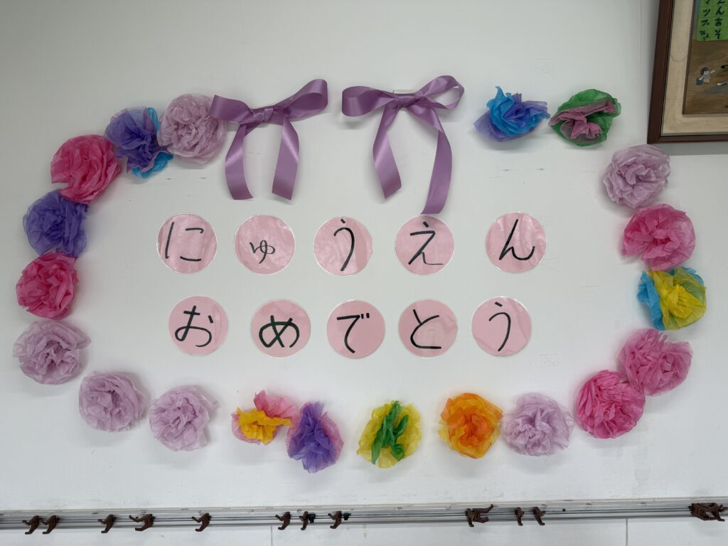在園の子どもたちは、前日に飾りつけをしたり、「つぼみ組さんにどんなお手伝いができるかな?」と考えたりしながら、新入園のお友だちと会えることを楽しみにしています。